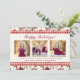 Un motif floral d'hiver traditionnel classique avec des poinsettias rouges, des baies et de la verdure, avec une bordure à carreaux rouges fait l'arrière-plan de cette carte qui présente 3 photos sur le devant, avec de la place pour votre choix de message principal, plus une deuxième ligne de message et une ligne pour les noms, la date ou une citation favorite. L'intérieur présente le même motif floral avec de la place pour 5 photos et une ligne de texte ou une date.