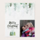 Carte de vœux de Noël hivernale forêt aquarelle avec des conifères et une typographie manuscrite tendance.