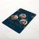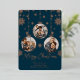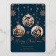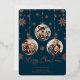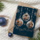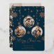 Cette carte de Noël en papier métallisé avec ornement moderne comporte 3 emplacements pour photos pour vous, votre famille, vos animaux de compagnie et plus encore. La carte présente une finition en papier métallisé avec des flocons de neige élégants et un design de cadre d'ornement.