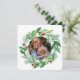 Une œuvre d'art peinte à la main à l'aquarelle orne cette carte-cadeau photo de couronne de Noël.