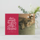Cette conception de vacances pour les amoureux des chats comporte la phrase "Passez un joyeux Noël à poil" dans un script blanc moderne avec de petites empreintes de pattes blanches autour et un motif d'empreintes de pattes rouge et blanc au dos.
