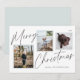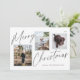 Cette carte de vœux de vacances photo décontractée mais élégante comporte trois photos et porte la mention "Joyeux Noël" dans une police de caractères cursive noire.