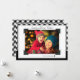 La conception de la carte de Noël rétro pour soirées à thème comprend un fond blanc simple pour votre photo de vacances préférée dans les coins de la photo rétro. La bordure extérieure et le verso sont un motif à carreaux / plaid de buffle iconique en noir et blanc assortis. Remplacez « Envoi de vœux de bonheur ! » par votre vœu de vacances préféré. #Noël #Fêtes #CartesDeNoël