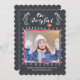 Envoyez une carte de Noël moderne et unique cette année que votre famille et vos amis adoreront. Notre carte de vacances photo contemporaine présente un cadre blanc et rouge fantaisiste pour votre photo avec des fioritures de support élégantes mettant en valeur la typographie disant "soyez joyeux" sur un fond de tableau noir. Le verso vous offre un espace supplémentaire pour des photos et un message supplémentaires.