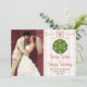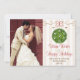 Cette jolie boule kisssing douce et accrochée de pomandre mistletoe attachée avec un arc rouge fait une jolie carte de vacances photo de Noël pour le couple marié. Ajoutez votre photo préférée de la mariée et du marié à cette carte élégante et fantaisiste avec des fioles d'or, des baies blanches de mistletoe, des ornements ronds, des coeurs et un subtil point de polka crème et arrière - plan motif rayé. Vous pouvez ajouter votre propre note de remerciement ou message personnel au verso de cette carte. Oeuvre © Chrissy H. Studios, LLC. Tous droits réservés.