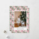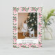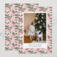 Carte de vacances avec un joli fond de papier peint rose pastel et vert avec une photo de famille associée à un vœu de vacances et votre nom et année dans une police sans serif.