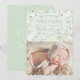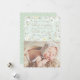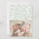 Carte de Noël adorable pour les premières fêtes de votre nouveau-né. Fond vert menthe avec des fleurs et des brindilles mignonnes en blanc et illustration de motif floral jaune. Il est écrit "Nous avons échangé des nuits silencieuses contre un paquet de joie" dans une police manuscrite élégante. Personnalisez-le avec le nom de votre famille. Certains éléments par Sweet Shop designs.