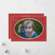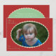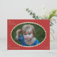 La conception présente une carte de Noël classique avec photo de famille rouge, avec un cadre festonné charmant et un texte élégant en vert menthe. La combinaison du rouge vintage et du vert menthe rafraîchissant crée une ambiance festive et moderne. Vous pouvez facilement ajouter vos détails personnels et votre photo. Parfait pour envoyer à vos proches pendant la période des fêtes.