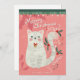 Jolie carte de Noël avec une ambiance rétro représentant une illustration d'un chat blanc et un texte "Meowy Noël". Parfaite pour les amoureux des chats. Personnalisez cette carte avec votre nom. Œuvre originale de Marketa Stengl.