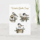 Célébrez la beauté sereine d'un hiver victorien avec cette carte de Noël Splendeur. Reprenant trois oiseaux hivernaux perchés sur une branche de pomme de pin enneigée, une bûche enneigée et une cabane à oiseaux enneigée, ornée d'accents festifs verts et dorés, ce design capture le charme, la tranquillité et l'élégance de la saison. Parfait pour envoyer des vœux de Noël chaleureux et sincères à la famille et aux amis.