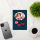 Une simple carte de Noël avec photo pour partager ces précieux souvenirs. De véritables accents de feuille métallique argentée ornent les décorations, le texte et la photo de votre nouveau membre de la famille avec une brillance luxueuse sur fond bleu marine.