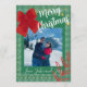 Thème de Noël, fond vert à carreaux, nœud rouge et feuille rouge, et éléments dorés encadrent la carte et la photo du couple. Modèle de nom modifiable.