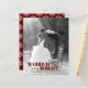 Célébrez votre premier Noël ensemble avec cette charmante carte de vacances économique. Le design présente les mots "Married and Bright" avec votre photo. Ajoutez votre message personnel. La carte comporte au verso un motif de flocon de neige sur fond rouge.