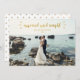 À tous les jeunes mariés ! Cette carte de Noël festive est parfaite pour les couples nouvellement mariés ! Montrez vos nouvelles photos de mariage avec ces adorables cartes de vacances Married and Bright (Mariés et radieux). Cette carte de Noël pour jeunes mariés présente un faux feuilletage doré et votre photo de mariage préférée.