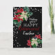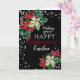 Une carte de félicitations élégante pour la retraite de Noël comprenant un fond noir décoré de jolies fleurs aquarelles rouges et blanches et de guirlandes lumineuses. La façon parfaite de dire félicitations à Noël à votre collègue, patron, employé, membre de la famille ou ami qui prend sa retraite. Personnalisez avec un nom et un message qui se lit actuellement "Tous mes vœux pour ce nouveau chapitre de votre vie !"