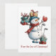 Envoyez des vœux de fêtes avec cette carte de Noël ludique représentant un bonhomme de neige souriant prêt pour la saison. Les clubs de golf prêts à l'emploi et les cadeaux colorés à partager, ce design joyeux mélange le plaisir de l'hiver avec l'amour du jeu. Parfait pour les golfeurs, les ligues de golf ou toute personne qui apprécie une salutation de vacances décontractée, c'est une façon festive de partager la joie avec les amis et la famille.