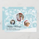 Photo de Noël personnalisée en bleu et blanc d'oeuf de jolie robin faite dans le style plat, avec trois zones encadrées blanches en forme d'ornements, contre un arrière - plan de flocon bleu et blanc. Personnalisez avec vos images et votre texte.