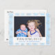 Jolie carte de Noël avec votre photo de famille préférée. Bandes bleu clair avec de jolis flocons blancs.