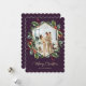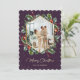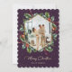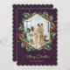 Elégante photo violette et or Joyeuse carte de Noël avec cadre photo géométrique entouré d'une couronne d'aquarelle de saint contre un arrière - plan violet foncé. Personnalisez facilement cette carte de fête avec votre photo et votre texte.