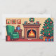 Ce design de carte de Noël capte le style festif et nostalgique "Game Retro Arcade", parfait pour les amateurs de jeux vidéo classiques. Le recto de la carte comprend trois espaces dédiés pour télécharger des photos de famille personnelles, vous permettant d'ajouter une touche personnalisée à vos salutations de vacances. L'arrière - plan présente une scène vibrante et pixélisée d'un salon de Noël cosy. Une cheminée crépitant est entourée de décorations festives, dont un sapin de Noël orné de décorations rouges et de lumières scintillantes. Un fauteuil vert est installé à côté d'une table empilée de cadeaux. Au-dessus de la cheminée, une couronne de Noël et des illustrations encadrées décorent le mur. L'inscription en gras "Joyeux Noël" renforce l'atmosphère rétro de la carte, ce qui en fait un choix délicieux pour répandre la joie des vacances.