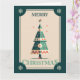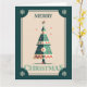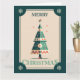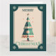 Carte de Noël vintage avec un arbre géométrique aux décorations colorées et aux accents de flocon de neige et message de Noël joyeux. Parfait pour les salutations de vacances ou la décoration festive.