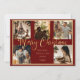 “Joyeux Noël” en belle écriture dorée fausse. Remplacez les photos par 5 de vos photos préférées. Fond rouge festif. Changez les noms et l'année, votre nom et quelle belle carte de Noël. Élégant. Si simple, mais chic.