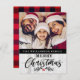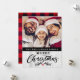 Modern Rustic Wood Family Photo Christmas Card - Quelle belle façon d'envoyer vos voeux de vacances cette saison. Votre photo préférée est présentée sur cette carte de Noël très spéciale et la carte est personnalisée avec votre nom de famille et Joyeux Noël dans une jolie typographie de script moderne, et est accentuée avec du bois. Le dos de la carte est un plaid de buffle rouge festif et tendance. La carte fait partie d'une collection. Conçu par Beverly Bainbridge Magnolia & Thistle