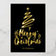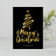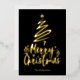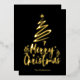 Fond noir feuille d'or Joyeux Noël écriture décorative avec un contour d'un sapin de Noël et une étoile sur le dessus. Cette carte de Noël est conçue pour que vous puissiez changer la couleur du fond et également entrer le nom de votre famille.