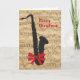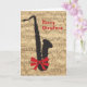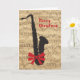 Carte de Noël avec un saxophone illustré sur une partition de musique rétro. Merci à Craft Bundles et Obsidendawn pour certains éléments du design.