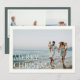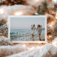Joyeux Noël | Carte de fêtes avec 3 photos. Typographie minimaliste moderne en beige doux avec fond de couleur vert poussiéreux de mer.