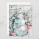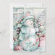 La carte présente un charmant bonhomme de neige de style vintage avec un sourire amical et un nez de carotte orange vif. Il se dresse au milieu d'un ensemble festif de cadeaux colorés et d'ornements de vacances étincelants. Le bonhomme de neige est orné d'un foulard douillet et d'un chapeau haut de gamme, dégageant un esprit de vacances chaleureux et gai. Il est entouré de cadeaux superbement emballés, de baubles scintillants et de délicats flocons de neige, créant une scène hivernale joyeuse. La carte vous invitation à personnaliser à la fois votre message et votre signature, ce qui en fait un moyen parfait d'envoyer des salutations festives avec une touche nostalgique.