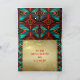 Personnalisez cette carte de vœux de Noël sud-ouest "unique" ! Elle présente un Kokopelli jouant de la flûte avec des notes de musique sur un fond de Noël doré et des étoiles, entouré de bordures turquoise, orange et noires et les mots inspirants..."Paix sur Terre" !