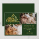 Carte de vœux verte avec une photo et l'écriture minimale deux Joyeux Noël