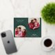 Carte de Noël verte très joyeuse avec photo et feuille d'aluminium. Joyeux Noël ! Cette carte de Noël photo présente un message classique sur un fond vert riche, avec une photo à double arche, c'est une excellente façon d'envoyer des vœux de Noël à vos amis et à votre famille.