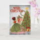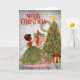 Carte de Noël vintage afro-américaine avec une femme taillant un arbre de Noël