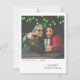 Partagez vos souvenirs de vacances avec cette carte de Noël personnalisable de style vintage, conçue pour imiter le charme d'une photo instantanée classique. La carte est dotée d'un modèle photo surmonté d'un filtre d'âge mou, donnant à l'image téléchargée un aspect chaleureux et nostalgique. Les lumières de Noël vertes et rétro, qui ont également un filtre vieilli pour se fondre naturellement dans votre photo, sont suspendues en haut de la carte, ce qui est parfait pour les scènes intérieures ou de patio où les lumières à cordes peuvent raisonnablement pendre. En bas, les modèles de texte manuscrits permettent une personnalisation complète : ajoutez votre nom de famille, l'année et un message de vacances personnalisé dans une police décontractée et chaleureuse qui améliore l'esthétique vintage. Cette carte est dimensionnée pour ressembler à une vraie photo instantanée, ce qui en fait une façon ludique, créative et personnelle d'envoyer la joie de Noël.