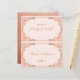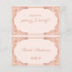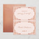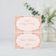 Une carte de table de mariage vintage rose et or rose avec le nom de l'invité et le numéro de table imprimés sur le devant et les noms des mariés et la date du mariage imprimés sur l'autre côté (c'est-à-dire l'autre moitié, avant de la plier). Elle a un cadre antique avec des décorations en faux or rose et également de l'or rose à l'intérieur. Le fond est rose saumon. Tout le texte est rose foncé, écrit en calligraphie élégante.