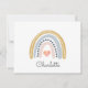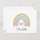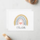 Joli arc-en-ciel boho personnalisé avec coeur, carte papier à lettres pour enfant. Roses, bleus, tons pastel moutarde.