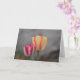 Cette carte de notes présente de belles tulipes à rayures de bonbons avec un arrière - plan doux.