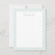Les fontes vert en vichy à la menthe molle et motif à lunettes sont une façon charmante de célébrer un nouveau bébé avec cette carte de papier à lettres customisée.