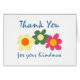 "Merci pour votre gentillesse" est imprimé dans une police bleu cyan avec trois fleurs colorées. Cliquez sur "Personnaliser" pour changer la couleur blanche de l'arrière - plan ; si vous le souhaitez.