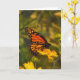 Le beau papillon noir et orange flotte par les fleurs jaunes dans un domaine. Masquez à l'intérieur de toute la carte de note d'occasion. Belle photo originale par Cherie Haines.