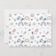 Carte de note plate personnalisée pour fille mignonne. Elle présente un motif amusant avec des licornes, des arcs-en-ciel, des baguettes magiques, des étoiles, des diamants, des noeuds, des nuages et des ailes.