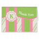 Faites écrire des notes de remerciement amusantes avec cette jolie carte à motifs personnalisée avec votre monogramme. Conçu en pois rose citron vert et pamplemousse, motifs rayés et un accent floral simple. Idéal pour les filles et les dames de tous âges, il suffit de modifier la lettre texte dans le facile éditeur Zazzle.