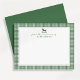 Une carte verte en vichy pépinière de charme pour bébé garçon, avec une illustration délicate de cheval à bascule et un texte personnalisable. Parfait pour les notes de remerciement, la correspondance personnelle ou la papeterie de pépinière, ce design intemporel allie un motif à chèque bleu classique avec des détails élégants. Un beau souvenir et une façon réfléchie d'envoyer des messages chauds à ceux qui sont chers.