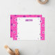 Carte à note plate avec étoiles violettes et bordures roses chaudes. Ajoutez votre propre texte en cliquant sur le bouton customiser orange.