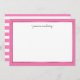 Nos élégantes cartes personnalisées à billets plats ont un arrière - plan cachemire rose avec bordure en papier rose autour de la zone de texte blanc avec votre nom ou choix de personnalisation en haut en caractères gris fusain. Cartes à l'envers avec un arrière - plan rose horizontal et blanc rayures.
