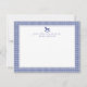 Une charmante carte de notes de crèche bleu en vichy pour bébé, avec une illustration délicate de cheval à bascule et un texte personnalisable. Parfait pour les notes de remerciement, la correspondance personnelle ou la papeterie de pépinière, ce design intemporel allie un motif à chèque bleu classique avec des détails élégants. Un beau souvenir et une façon réfléchie d'envoyer des messages chauds à ceux qui sont chers.