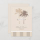 Carte de remerciement mariage avec un thème de plage avec une bannière "merci" enroulée autour de deux palmiers. Le format moderne de carte à plat comprend de l'espace sur le dos pour un message personnel. La collection Mariage "Shoreline Chic" d'invitations de mariage et de papeterie élégantes présente des couleurs tropicales, des illustrations d'étoiles de mer, de coquillages, de palmiers et de rayures. Style simple et élégant, parfait pour une destination mariage balnéaire. Couleurs neutres : ivoire, blanc et sable