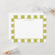 Une carte de note fraîche et vive avec un cadre à carreaux vert citron qui apporte une touche moderne et joyeuse. Le motif géométrique donne au design une sensation tendance tout en le gardant propre et minimal. Parfait pour les notes de remerciement, les inclusions de cadeaux, les messages d'invité, les encarts de colis ou la papeterie d'événement coordonnée. La bordure à carreaux ajoute une décoration sans surcharger la mise en page. L'en-tête peut être facilement personnalisé.